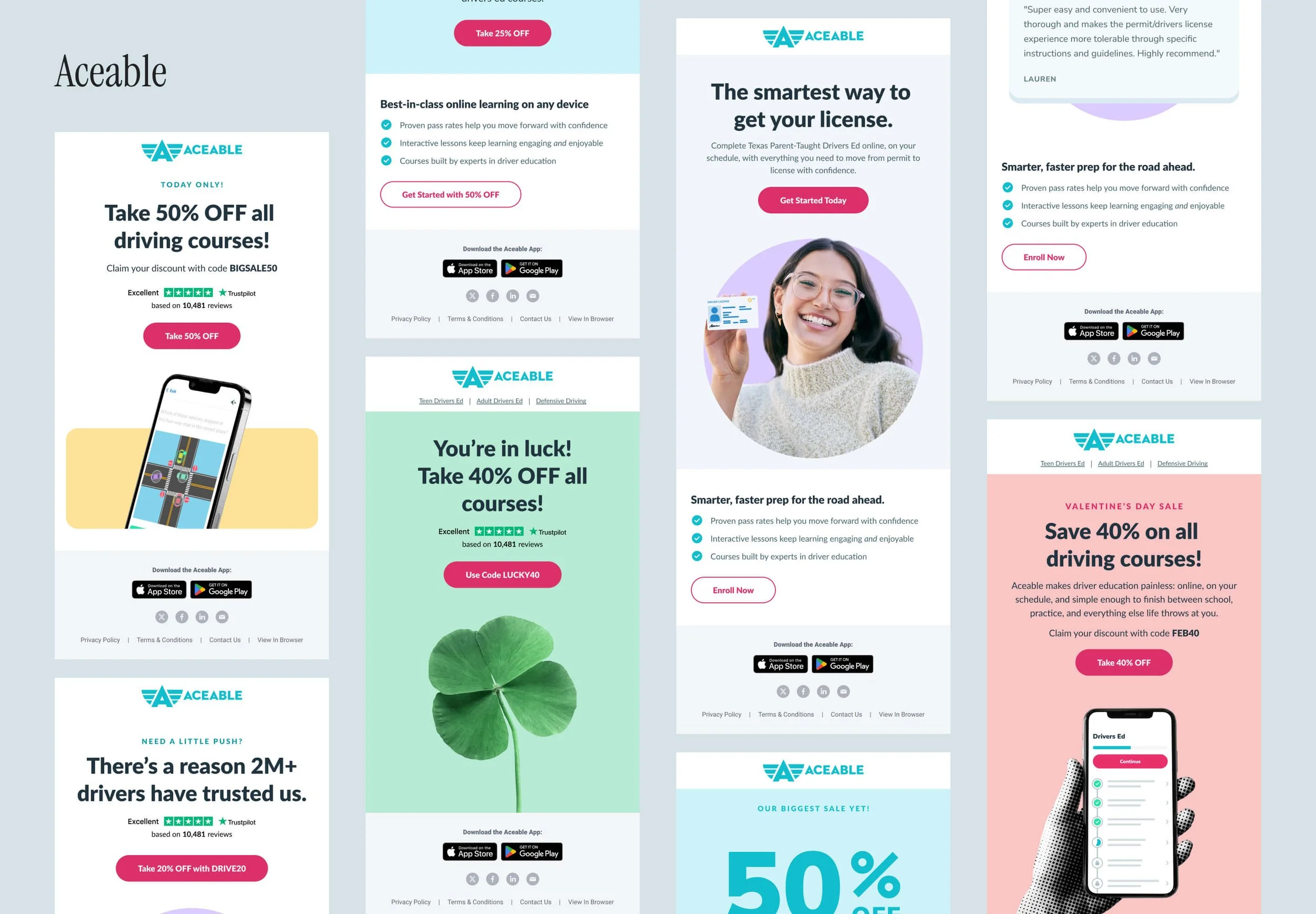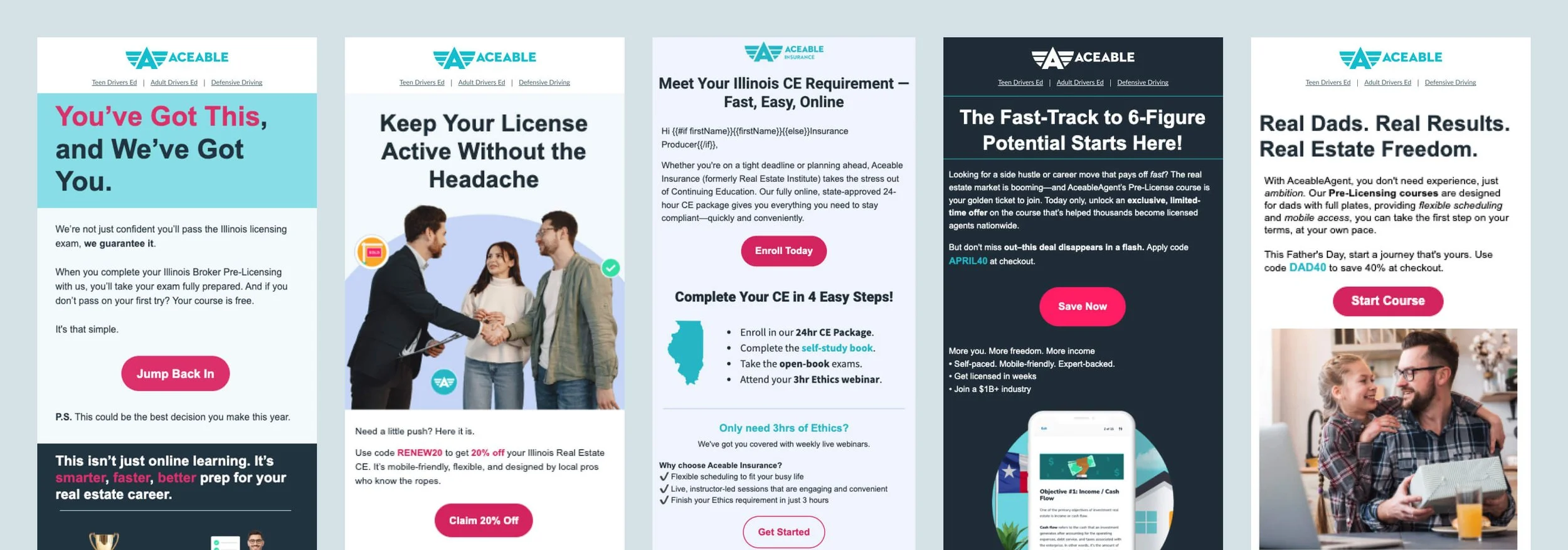 In late 2024, Aceable leadership identified a major issue for the brand: email design. Email drove a significant share of outreach and enrollments for Aceable, AceableAgent, PrepAgent, iDriveSafely, and DriversEd.com… yet our branding was incredibly lackluster. Each brand lacked consistency, clarity, and brand distinction.